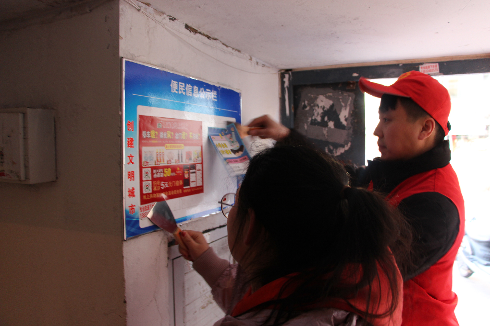 會(huì)后,集團(tuán)公司與會(huì)龍山社區(qū)積極對(duì)接,安排人員分批次深入會(huì)龍山社區(qū),與社區(qū)書(shū)記現(xiàn)場(chǎng)溝通并安排部署幫建工作。志愿者們向社區(qū)居民發(fā)放黨的二十大精神宣傳手冊(cè)、對(duì)轄區(qū)內(nèi)消防設(shè)施進(jìn)行清潔檢查、單元樓內(nèi)外非法廣告進(jìn)行清除、對(duì)非機(jī)動(dòng)車(chē)進(jìn)行合理擺放、樓內(nèi)外堆放垃圾雜物上門(mén)進(jìn)行溝通,向居民講解雜物堆積的潛在危害,進(jìn)一步提升了社區(qū)居民的文明意識(shí)。